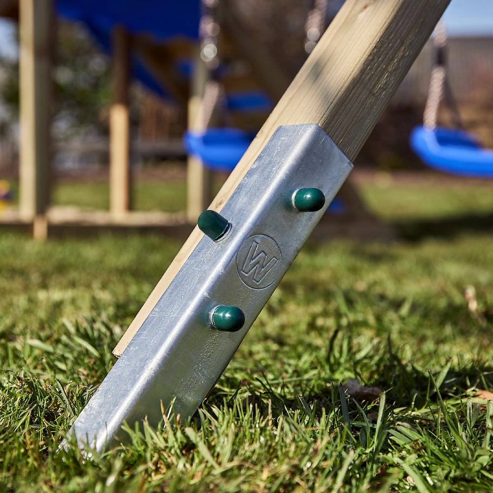 Anchoring the posts keeps the structure stable, reducing the risk of tipping or wobbling, and helps it hold up against active play or strong winds. At Wickey we require all ground-contact posts on climbing frames and swing sets must be securely anchored. For extra support, ladders and climbing walls each need two anchors, and slides must be anchored separately as well. Depending on your garden’s soil type (compacted or soft), the correct anchors may differ, so it’s vital to follow the guidance carefully. If you want to make sure you buy the right anchors, read our blog about anchoring, or check the product page for recommended anchors for your climbing frame.