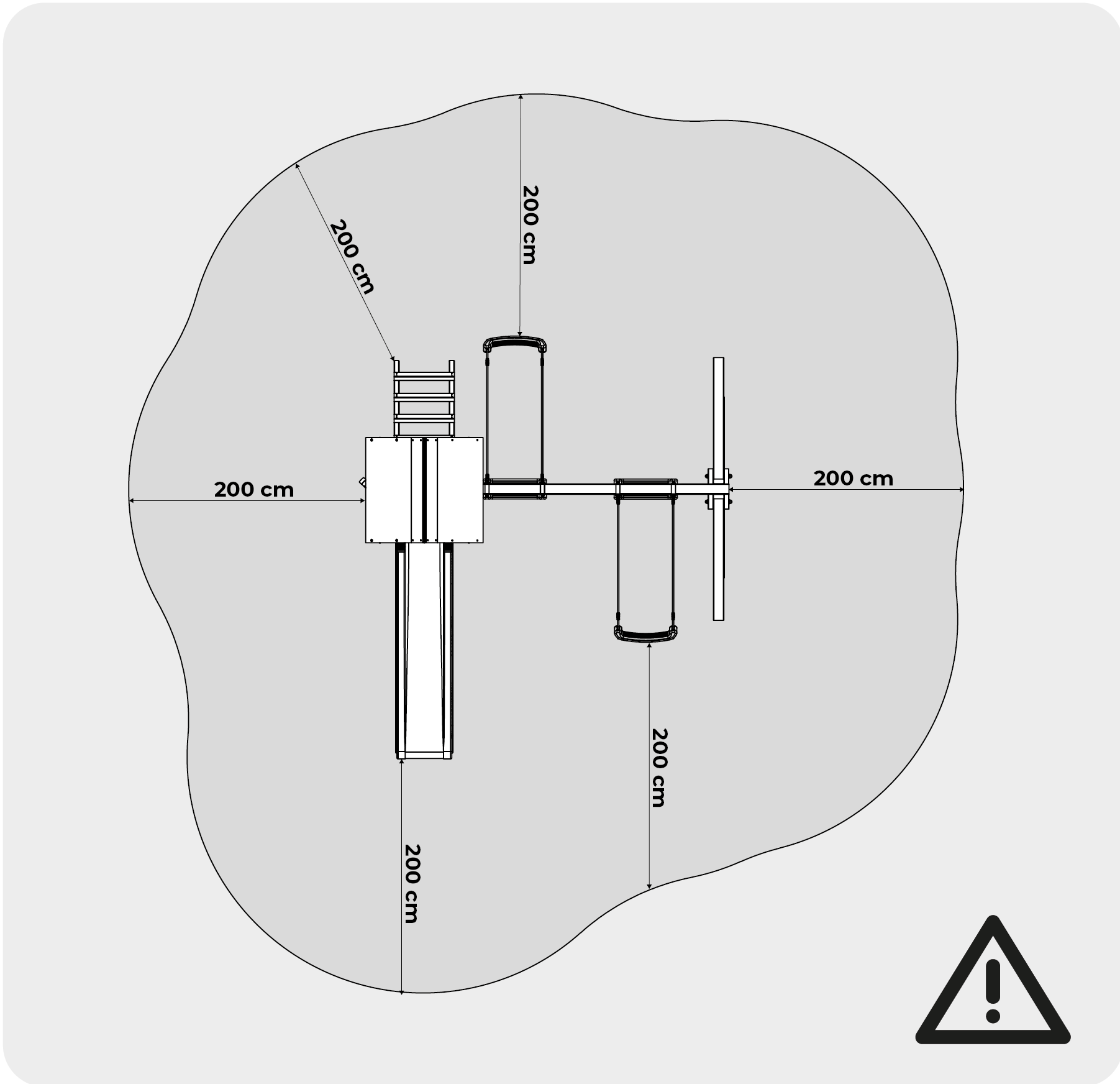 - Install the climbing frame on flat, stable ground and maintain at least 2 metres of clear space around it to prevent collisions.