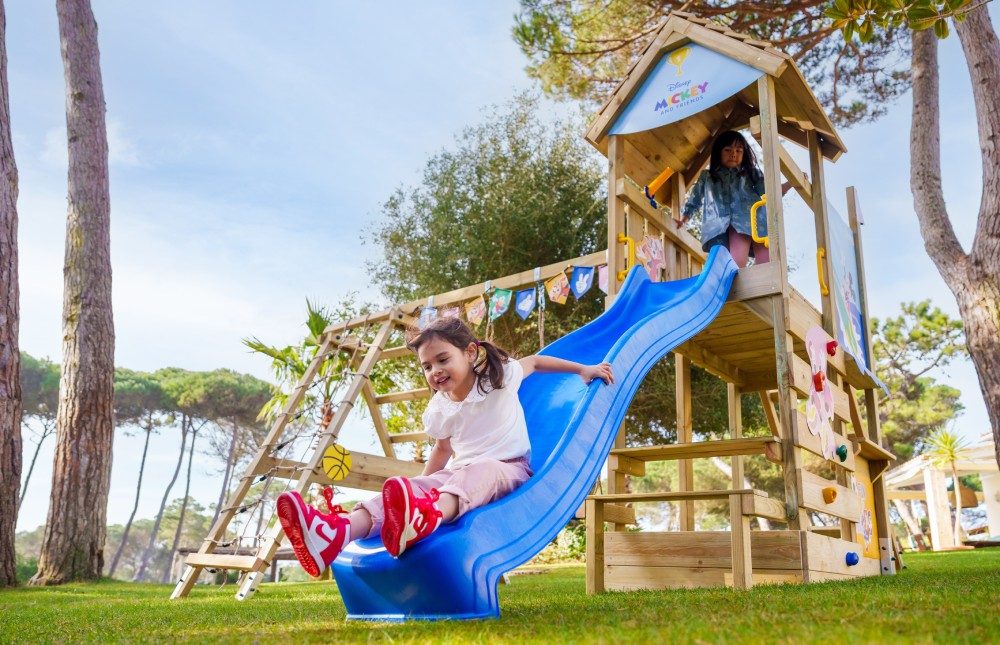 In the fun world of Mickey and friends, no day is like the other. Our Mickey Mouse-themed playsets invite the little ones to join Mickey, Minnie, Donald, and Goofy to climb, swing and slide in a world where laughter reigns and a new adventure awaits every day.