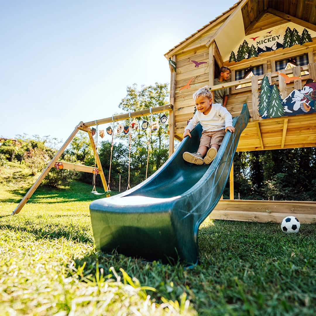 Wickey sees itself as a pioneer in the development of high-quality climbing frames and outdoor playground equipment for children. Our creative and lovingly designed wooden play equipment transforms every garden and outdoor area into a wonderful adventure paradise for children! Whether it's a swing, sandpit, climbing frame with slide or a model from our Disney range - all Wickey play equipment features impressive high quality and unique design. Combine a children's climbing frame with a swing frame or extend a playhouse with a sandpit - there are no limits to your creativity! Colourful accessories on your climbing frame or tower playhouse make the play experience perfect. If you're looking for a special sporting challenge as a family, you can get active together in the garden with our FIT outdoor fitness equipment. And to ensure that the adventures continue in your dreams, we offer lovingly designed kids' beds - from single beds to loft beds.